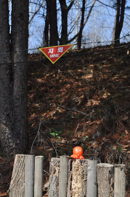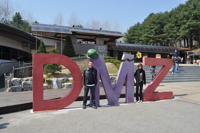 Al final, amb alguns dubtes, vam decidir visitar la DMZ amb un tour turístic (que és l’única manera possible de fer la visita). L’experiència no va ser del tot positiva amb una guia que no va explicar gairebé res, visites ràpides a les atraccions (que recordaven a un parc temàtic en algun moment) i per acabar una visita de 40 minuts a un duty-free. També ens van portar a Dorasan, una estació de tren inutilitzada des del 2008 i que és l’última estació de Corea del Sur que conecta amb Corea del Nord. El què més ens va impressionar de l’estació desèrtica va ser un treballador del punt d’informació cultural que tenia ganes de xerrar amb els turístes i ens va demanar, si us plau, que parléssim sobre el conflicte coreà als nostres països. En qualsevol cas vam poder “veure” Corea del Nord (amb uns primàtics des d’un observatori) i en Pulpito va fer-se algunes fotos divertides.