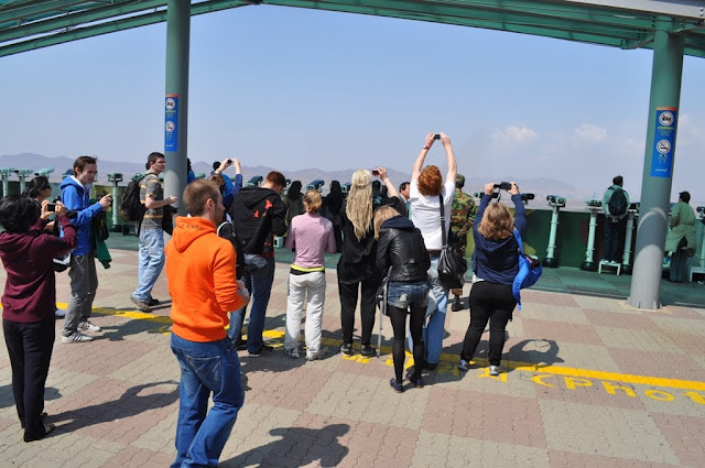 Essent la nostra primera visita a Corea teníem interès en saber, de primera mà, més coses sobre el conflicte entre les dues corees. La primera sorpresa va ser descobrir que el conflicte no és gaire visible al carrer (només vam topar-nos amb un reduït grup de gent de Justice4NK en una mena de Rambla peatonal) i ningú ens va intentar explicar el tema. Segons ens va explicar en Carles de la seva experiència a Corea, el ciutadà mitjà no està massa interessat en el conflicte. La part més visible són els joves militars que es poden veure pel carrer (que visiten les nòvies a la ciutat ja que la mili dura 2 anys i és obligatòria).